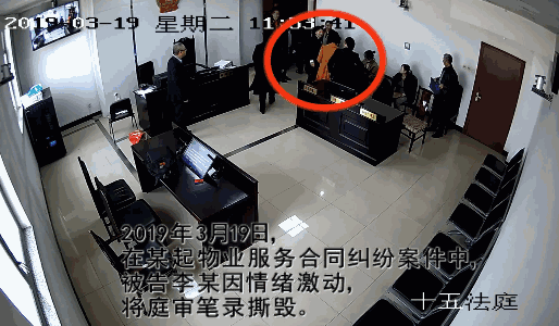3月19日上午,某人民法院开庭审理一起物业服务合同纠纷案件。被告李某情绪激动之下当庭撕毁庭审笔录,藐视法庭纪律,其行为妨害了正常的民事诉讼,法院依法对其作出罚款2万元并拘留1天的处罚决定。 某物业公司诉被告李某等六人物业服务合同纠纷一案中,业主认为物业服务不到位,庭审中部分业主哄闹法庭。 长达3个小时的庭审结束后,六名被告均拒绝在庭审笔录上签字。 被告李某核对笔录时,趁法官转身之际,竟撕毁开庭笔录! 李某无故撕毁笔录,严重藐视法庭,挑衅司法权威,法警迅速出警将李某控制。 法官对李某进行严厉训诫后,李某认识到自己的错误行为造成了严重后果,承诺今后不会再犯。 法院依法对李某作出2万元罚款及拘留1天的处罚决定,现李某已全额缴纳了罚款。 ▲点击查看完整视频