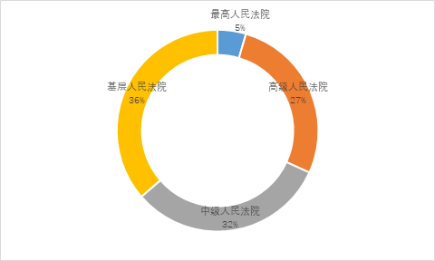 在已发布的22例刑事指导性案例中,基层人民法院审理的案件数量最多,共计8例,总体占比为36%;中级人民法院和高级人民法院的数量依次为7例、6例,总体占比分别为32%和27%。其中,中级人民法院的数量从2017年的3例上升到7例,相比2017年(占比20%)提升了12%,总量超越高级人民法院。最高人民法院仅有1例,总体占比为5%(见图3-4所示)。